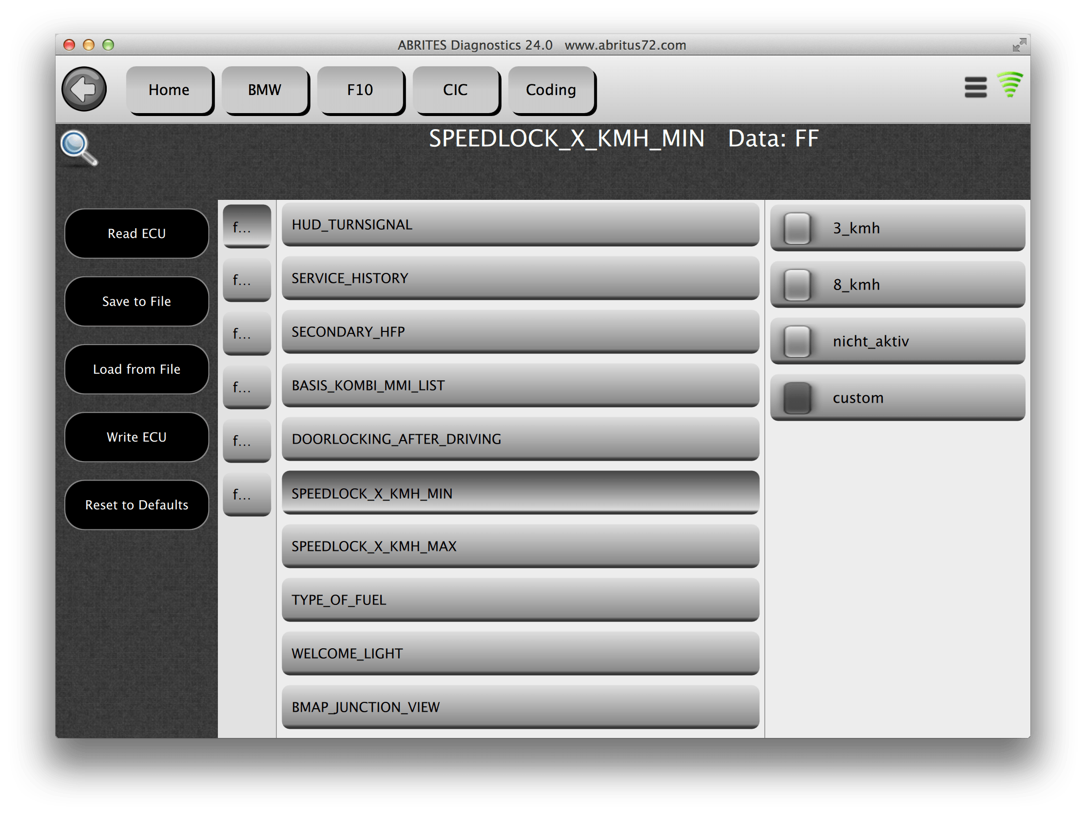 Allows reading and modification of the vehicle order in many different languages. Encoding of every unit of the vehicle with data from the vehicle order. The user is also allowed to tweak custom options in different modules to unlock behavior that is not allowed by the official software (like video in motion, different light options, etc.)